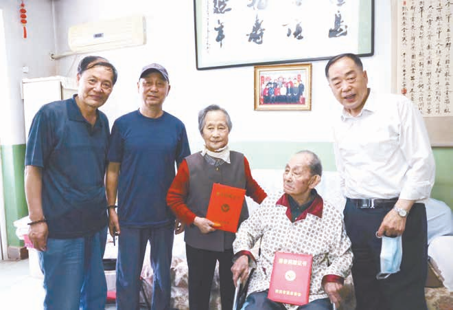 由于两位老人行动不便,省慈善协会慈善专员贾皓、募集办主任戴士芳专程前往老人家中,接受捐赠并为两位老人颁发了捐赠荣誉证书。“我今年92岁,老伴96岁……我们只是捐一点钱,微不足道,希望能为社会公共事业作一点贡献。”刘萍老人颤颤巍巍地接过荣誉证书深情地说。